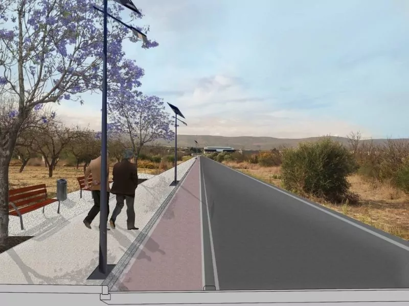 La actuación plantea como objetivo prioritario fomentar la conexión entre los dos núcleos urbanos del municipio a través de vial de movilidad sostenible, priorizando los itinerarios peatonal y ciclista. Además se dotará de una iluminación eficiente energéticamente, diferenciando entre la calzada y las zonas reservadas a peatones y bicicletas. El vial tiene su inicio en el camino San Miguel, partiendo de las instalaciones deportivas ya existentes.