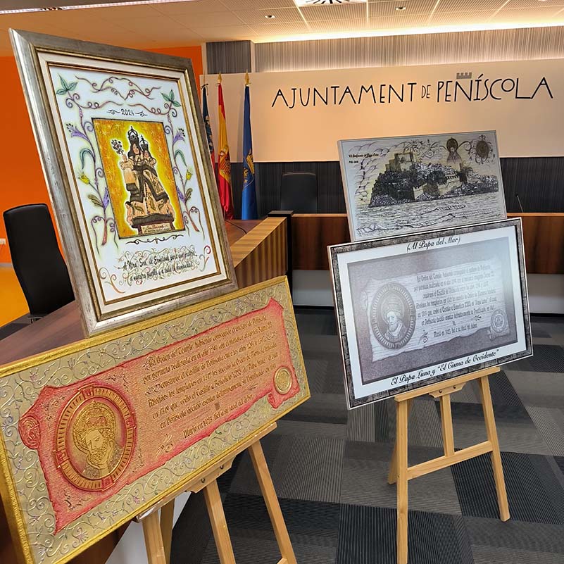 - “El Papa Luna y el Cisma de Occidente” y “A la ciudad de Peñíscola, en el sexto centenario del Papa Luna” son las obras que el pintor ha donado a la población.