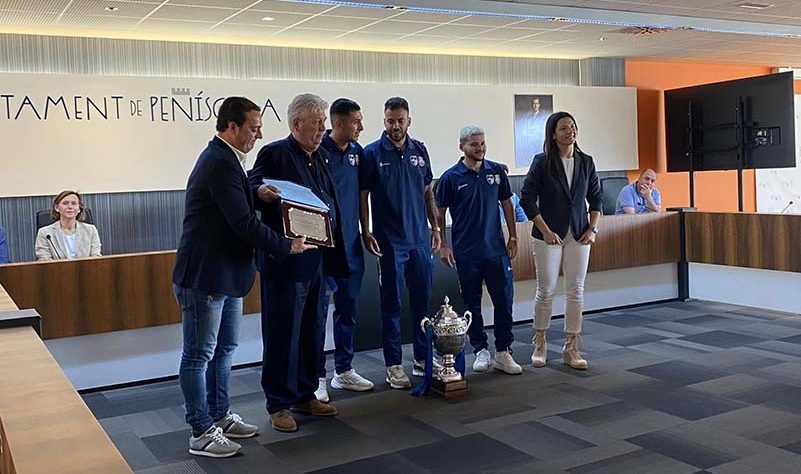 - El Ayuntamiento de Peñíscola realizó el pasado sábado el recibimiento oficial al Servigroup Peñíscola por su título de campeón de la Segunda Federación Futsal y por el ascenso a Primera, en una temporada en la que los peñiscolanos también alcanzaron las semifinales de la Copa del Rey.