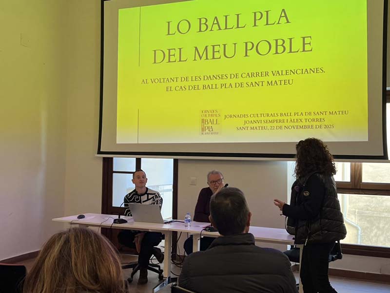 Aquest cap de setmana, Sant Mateu ha celebrat les Jornades Culturals 2025 amb activitats centrades en el Ball Pla, recentment declarat Festa d’Interés Turístic Provincial. L’esdeveniment ha combinat exposicions, conferències, música i dansa, amb una participació activa tant del públic experimentat com de noves persones que s’apropaven per primera vegada.