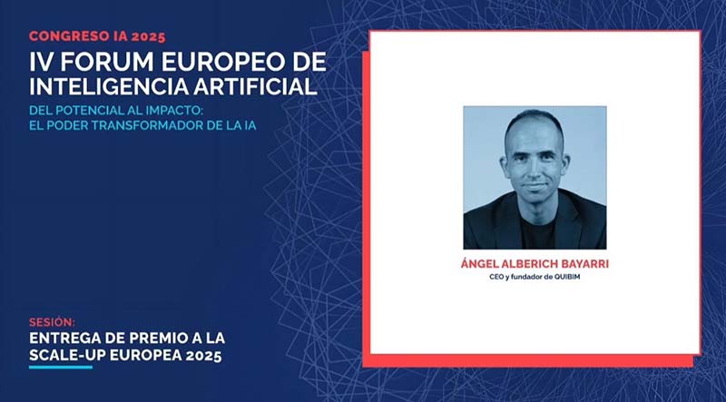 Durante el IV Forum Europeo de Inteligencia Artificial 2025, titulado “Del potencial al impacto: el poder transformador de la IA”, la startup Quibim ha sido reconocida con el Premio a la Scaleup Europea 2025. La ceremonia tuvo lugar en la sesión “Entrega de premio a la Scale-Up Europea 2025”, en la que Ángel Alberich Bayarri, CEO y fundador de Quibim, recogió el galardón.