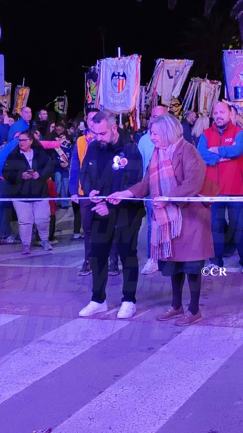 En arribar al recinte de les casetes, el president de la Comissió Organitzadora del Carnaval, Christian Rubio, conjuntament amb l’alcaldessa de Vinaròs, Maria Dolores Miralles, han realitzat la tradicional tallada de cinta.