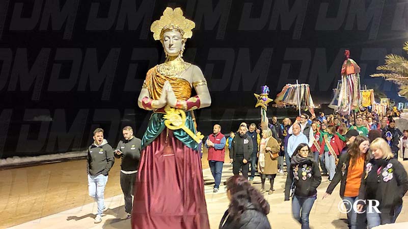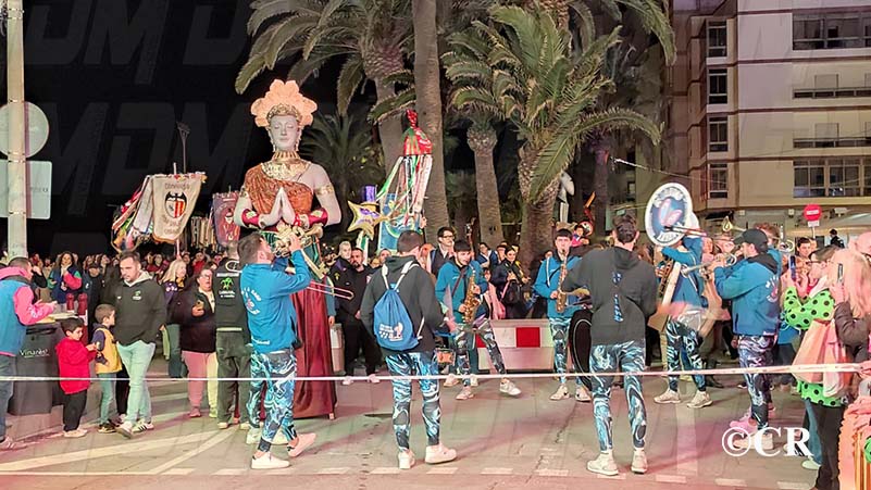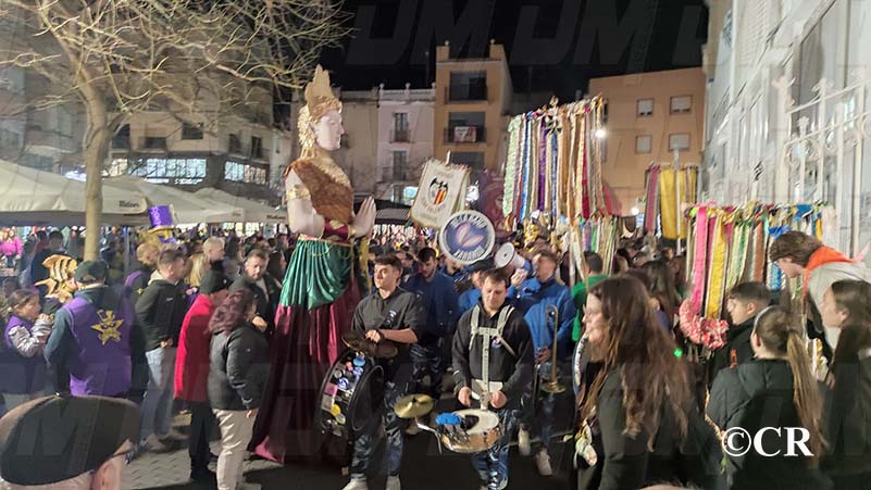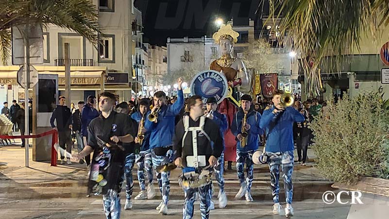 Les reines, reis, comparsers i estandarts s’han reunit a les 20h a la Plaça del Mercat, des d’on ha sortit la comitiva amb l’acompanyament musical de la Xaranga Bé i A Band.