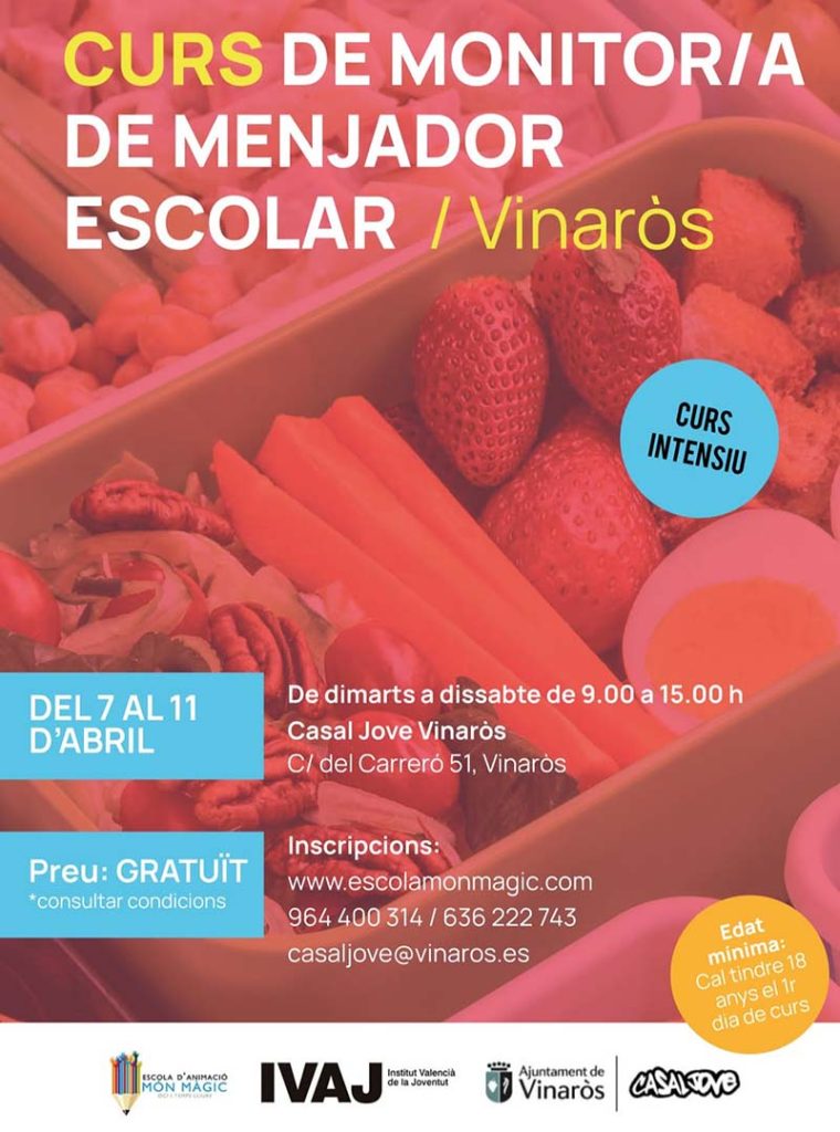 El Casal Jove de Vinaròs ha presentat, a través dels seus canals de difusió, el primer dels cursos de formació que formen part de la programació del segon trimestre: el curset de monitor/a de menjador escolar.