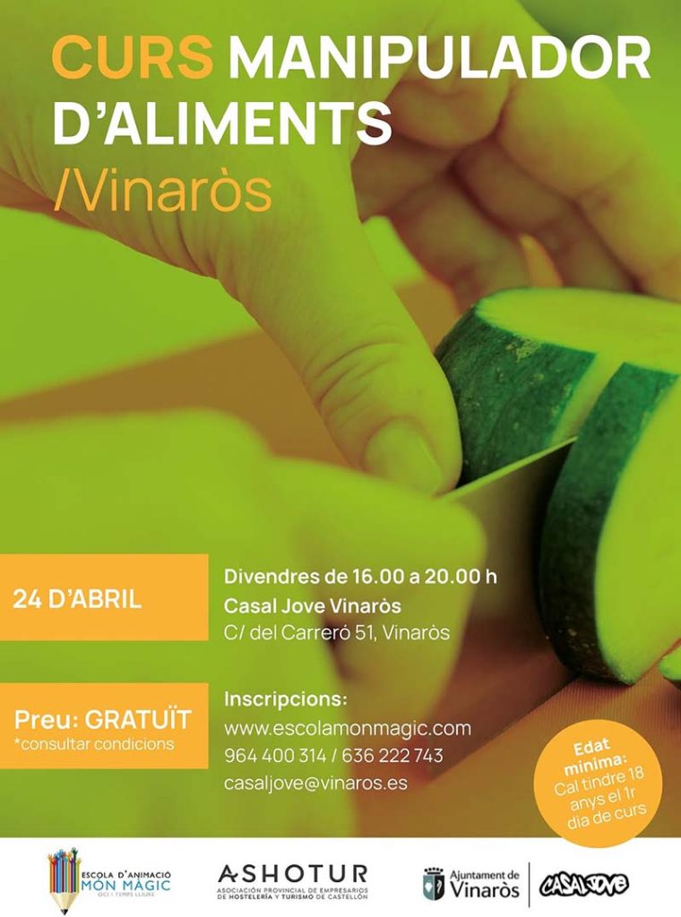 El Casal Jove de Vinaròs ha presentat, a través dels seus canals de difusió, el segon dels cursos de formació que formen part de la programació del segon trimestre: el curset de manipulador d’aliments.