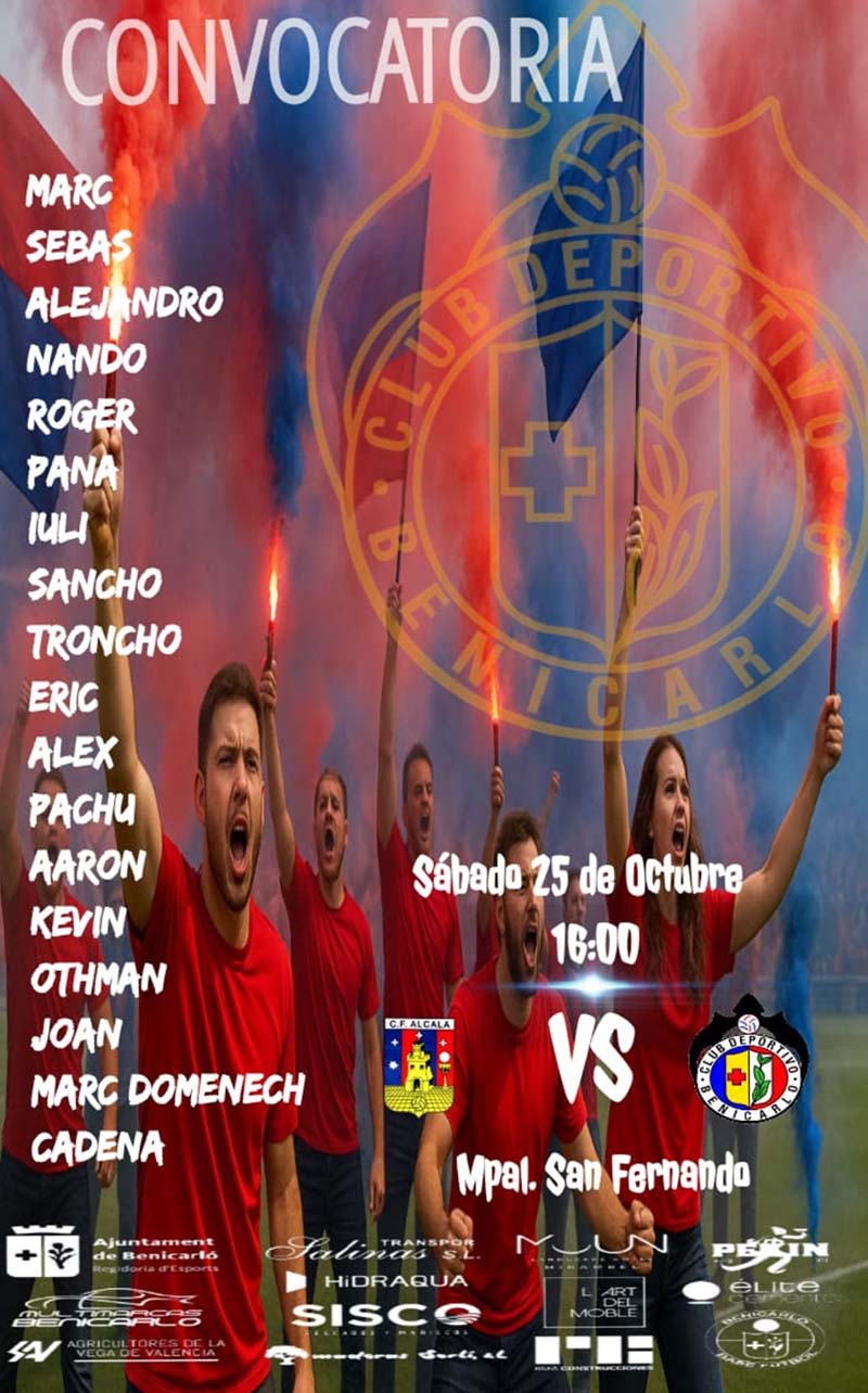 El CD Benicarló disputa hui, dissabte 25 d’octubre de 2025, la sisena jornada de la Lliga 2025/2026, amb un partit fora de casa que l’enfrontarà al CF Alcalà al Camp Municipal d’Alcalà de Xivert, a partir de les 16.00 hores.