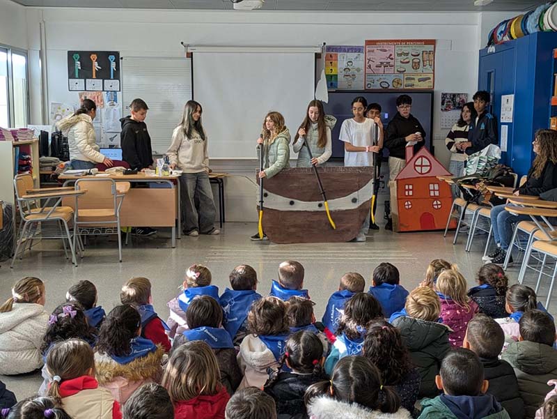 L’escola va organitzar diverses activitats pensades per fomentar la participació i l’esperit festiu. Entre elles, van destacar les animacions teatrals realitzades pels estudiants de l’IES Joan Coromines, que van aportar dinamisme, humor i creativitat al matí, captivant els més petits.