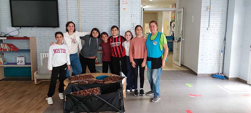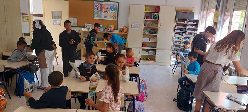 Els xiquets i xiquetes van acudir a l’escola vestits de castanyers i castanyeres, omplint passadissos i patis de somriures i il·lusió. L’alumnat de sisé va tindre un paper molt especial: es va encarregar de tallar les castanyes, portar-les a torrar i col·laborar amb l’alumnat d’Infantil en la preparació de les paperines. A més, van ser un model per als més menuts, ensenyant-los el ball de la Castanyera i compartint amb ells moments de convivència i alegria.