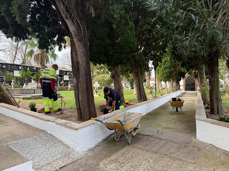 El camposanto ha mejorado también su imagen, aprovechando la cercanía de Todos los Santos, con renovación de pintura en fachadas exteriores, acondicionamiento de zonas ajardinadas y mantenimiento y limpieza exhaustiva del recinto interior, con el fin de que esté en las mejores condiciones ante la previsible visitas de los vecinos y vecinas en estas fechas en que se honra a los familiares fallecidos.