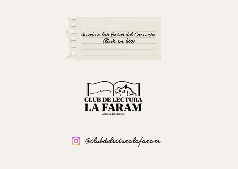 Les bases completes del concurs es poden consultar a través del link disponible a les xarxes socials del Club de Lectura La Faram. Per a qualsevol dubte o aclariment, es pot contactar mitjançant missatge directe o al correu electrònic clubdelecturalafaram@gmail.com.