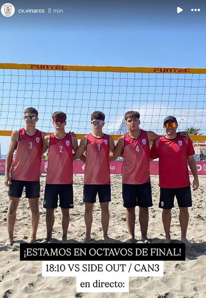 El Club Voleibol Vinaròs, a través de les seves xarxes socials, ha informat que l’equip sub-17 del club vinarossenc s’ha classificat aquesta migdia per als octaus de finals del campionat d’Espanya cadet de volei platja sub-17, que s’està disputant a la platja de La Atunara, a La Línea de la Concepción.