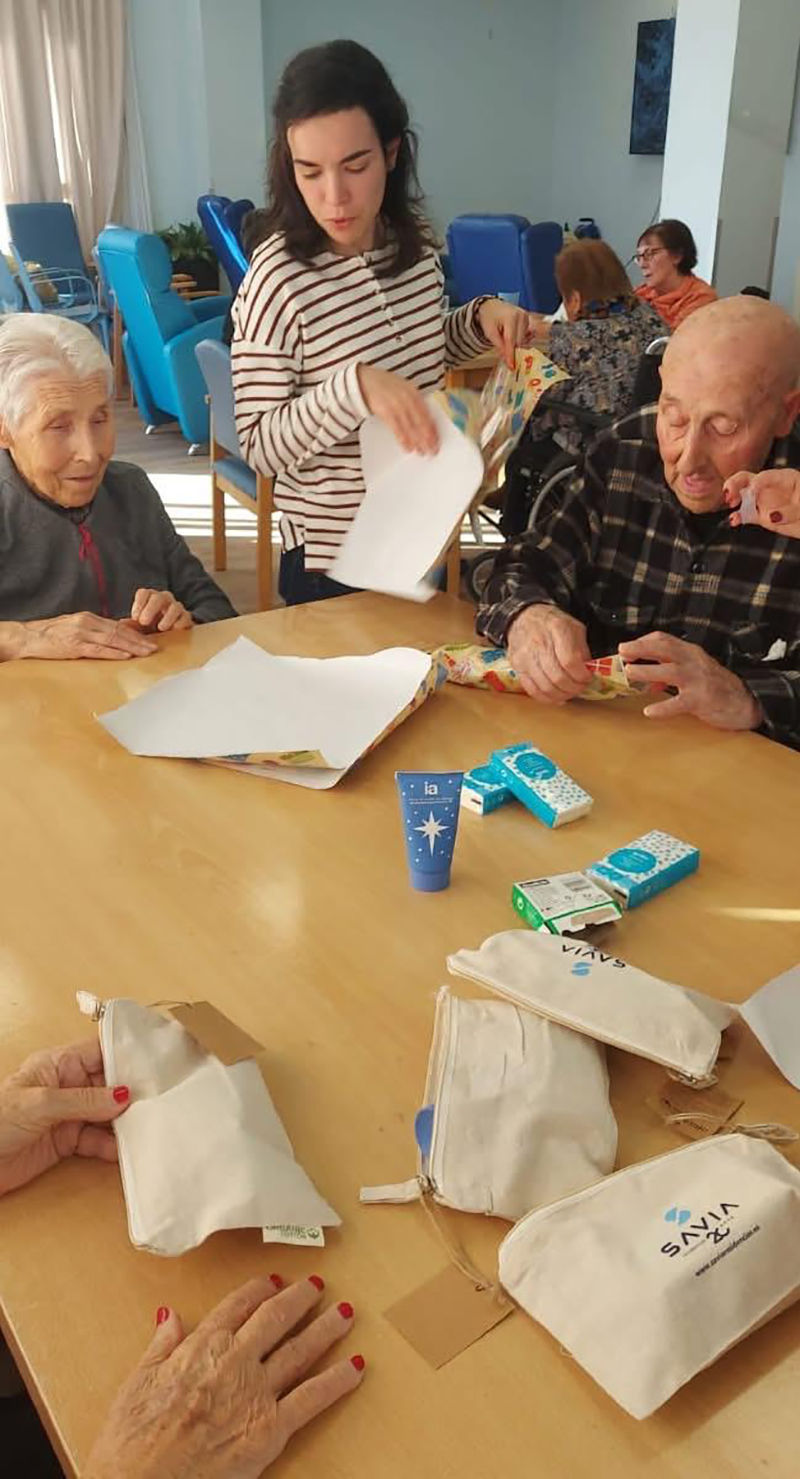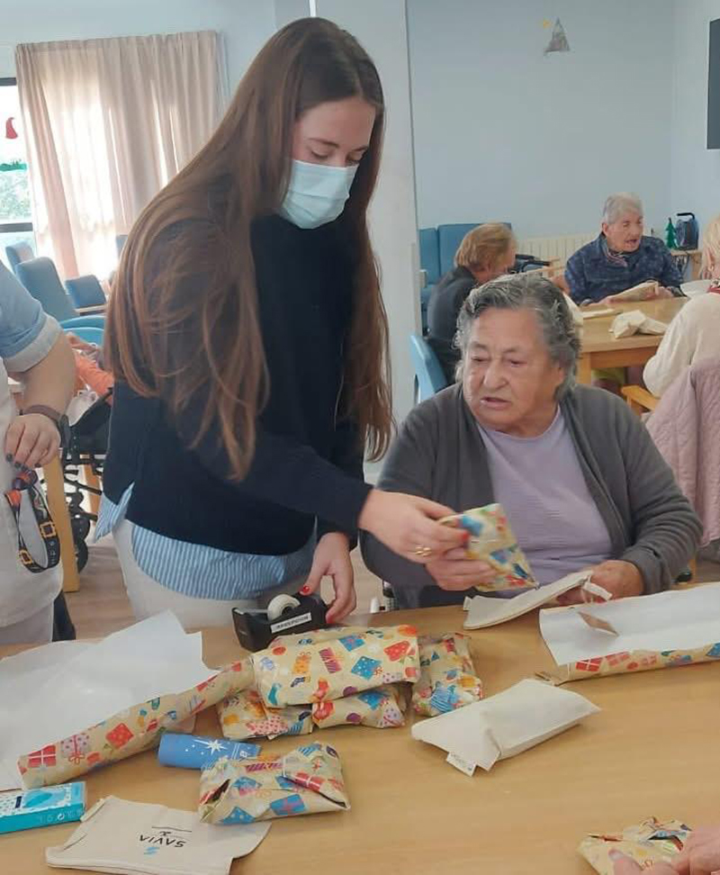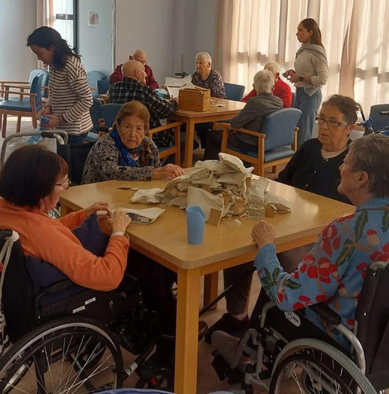 Els alumnes de l’ESO de la Salle han realitzat unes targetes de Nadal on han desitjat el millor per aquest 2025 a tots els usuaris amb una felicitació per a cadascun de les persones usuàries. Per altra banda, voluntaris del col·legi Ntra Sra de la Consolació han realitzat un taller d’embolicar regals que han ajudat en els regals dels reis mags.
