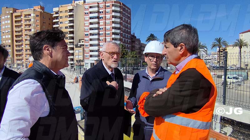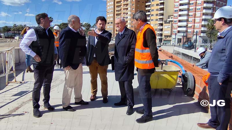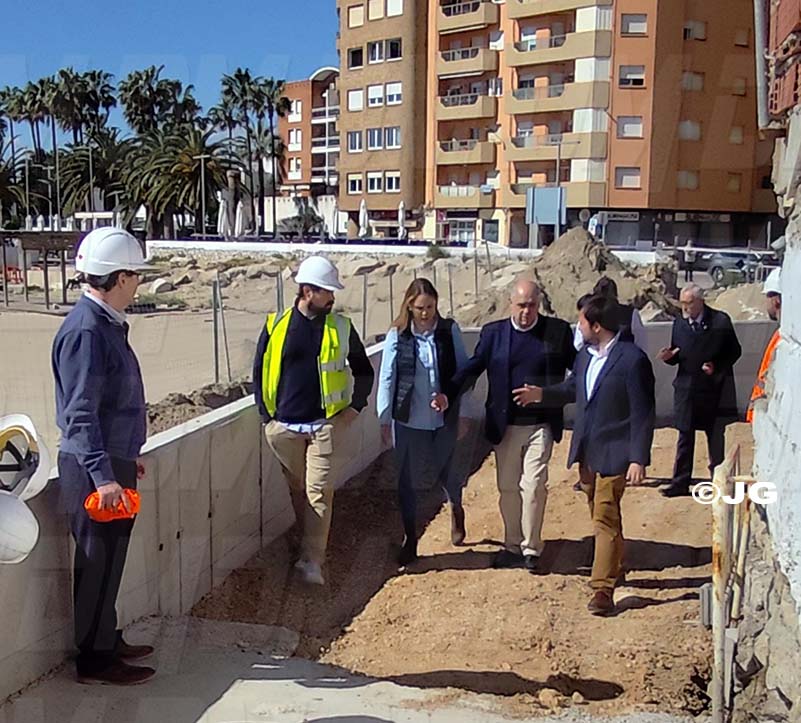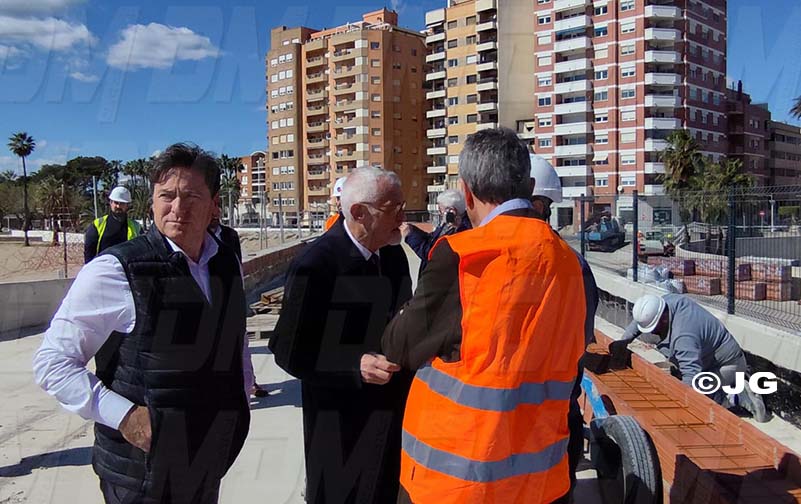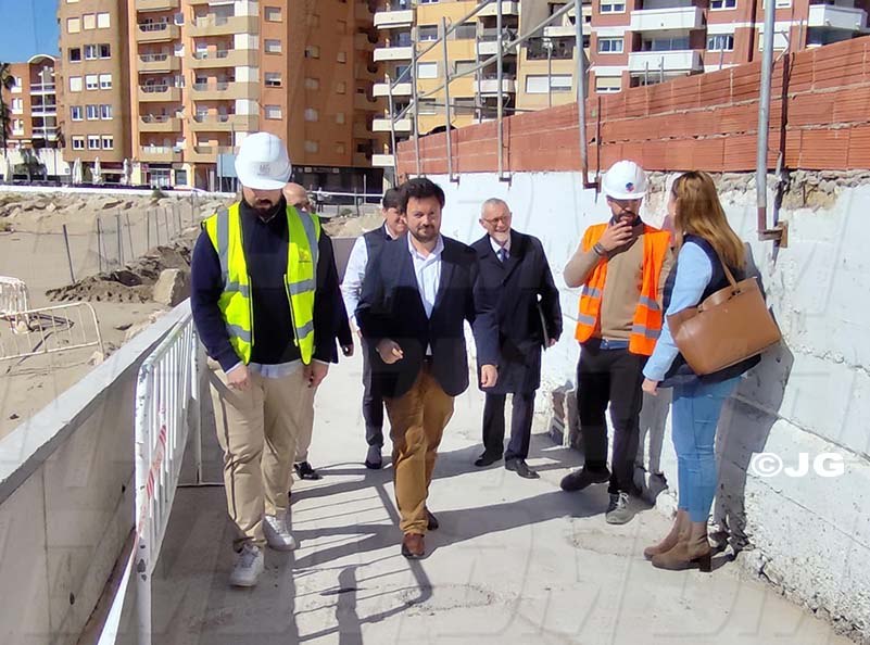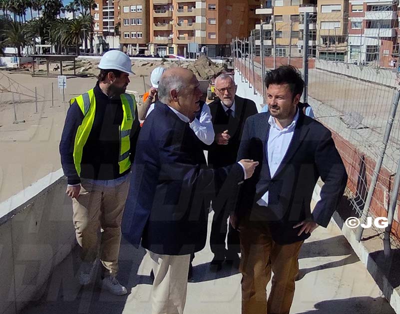 - El director general de Costes, Ports i Aeroports, Marc García, ha visitat avui Benicarló per comprovar l’evolució de les obres de construcció del nou passeig sobre la platja del Morrongo. Acompanyat per l’alcalde, Juanma Cerdá, García ha pogut constatar el bon ritme de les obres que, segons les previsions de la Conselleria, estaran finalitzades a finals de juny.