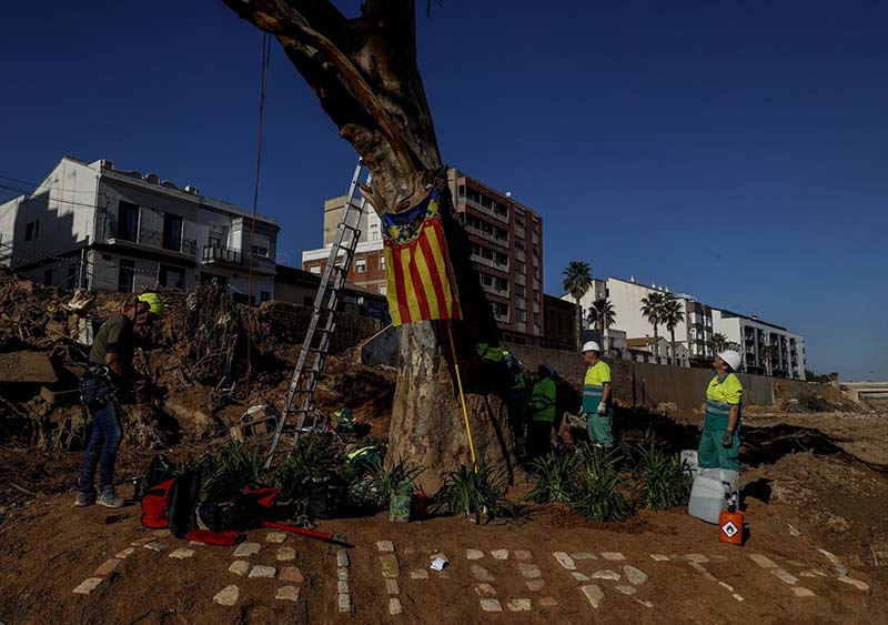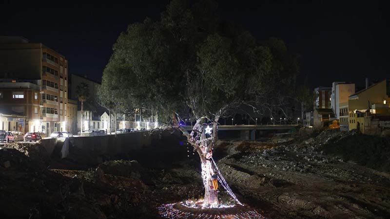 L’arbre, que va resistir la DANA registrada fa un any i que també va sobreviure a la devastadora riuada de 1957, s’ha convertit en un autèntic símbol de resistència, memòria i unió veïnal. Durant les tasques de recuperació després de la tempesta, el seu tronc ferit va acollir trobades de veïns i col·lectius afectats, i fins i tot va lluir diverses senyeres que el poble hi va penjar com a mostra de força i esperança.