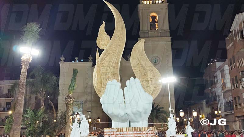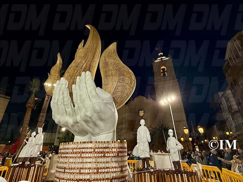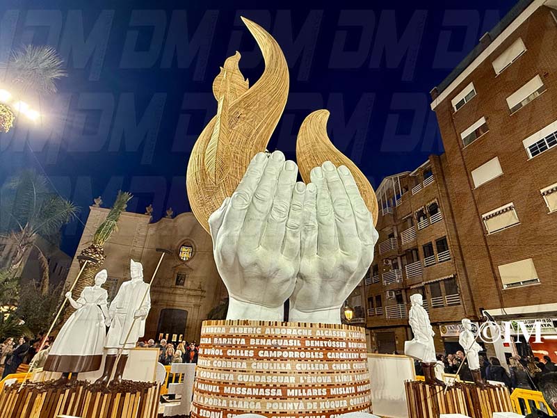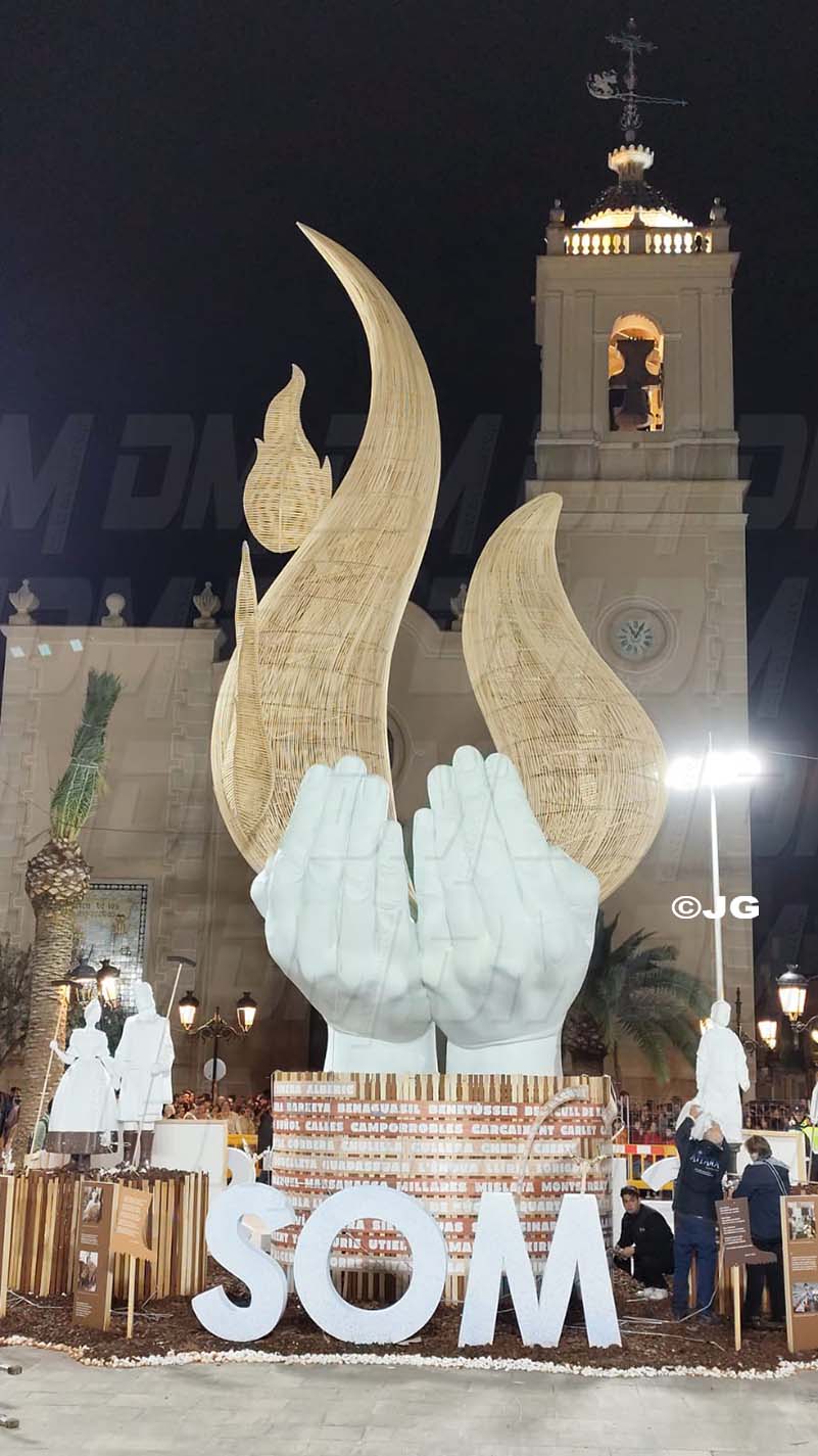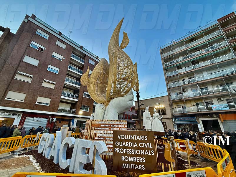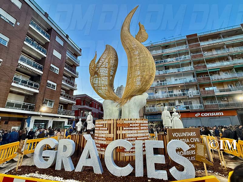 Amb 12 metres d’altura, la falla presentava un cos central en forma de mans sostenint flames de vareta il·luminades des de l’interior, representant la llum que uneix en els moments més difícils. En la seva base, figuraven els noms de tots els municipis afectats per la tragèdia, i als costats, es trobaven figures de fallers i voluntaris sense rostre definit, en homenatge als qui van brindar la seva ajuda desinteressada.