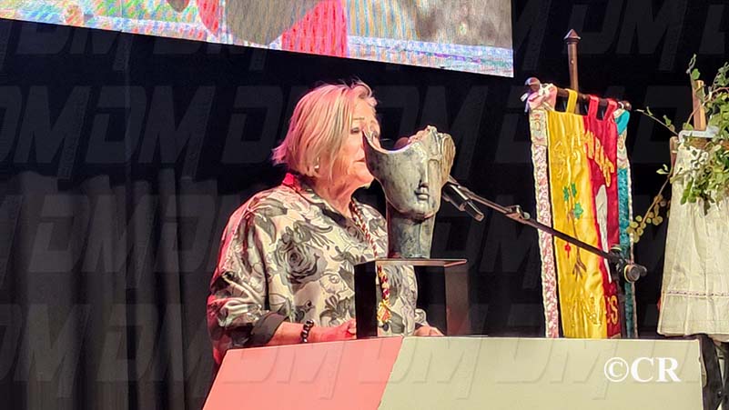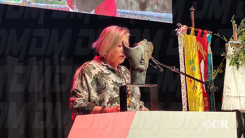 Finalitzat el vídeo, l’alcaldessa Maria Dolores Miralles ha pujat a l’escenari per realitzar un discurs en el que ha valorat el treball del Grup Folklòric per preservar la cultura vinarossenca.