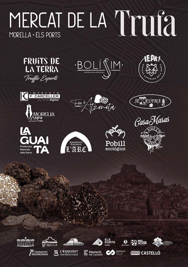 Esta nova fira tracta de donar a conéixer este versàtil producte i la seua varietat local, tuber melanosporum. Venda directa de trufa i altres elaboracions estaran disponibles en els diferents estands d’empreses de proximitat de la comarca dels Ports i veïnes. En esta primera edició participen Fruits de la terra, Bolíssim, IEPA, Imprenta Carceller i Morella negra, Trufas de Atzeneta, SE Trufma la Guaita, Carnisseria l’Arc, Pubill ecològics i Casa Masas. D’esta manera, el públic té l’oportunitat de descobrir la trufa de primera mà, així com olis, vins i cerveses artesanes que mariden amb este tresor gastronòmic.