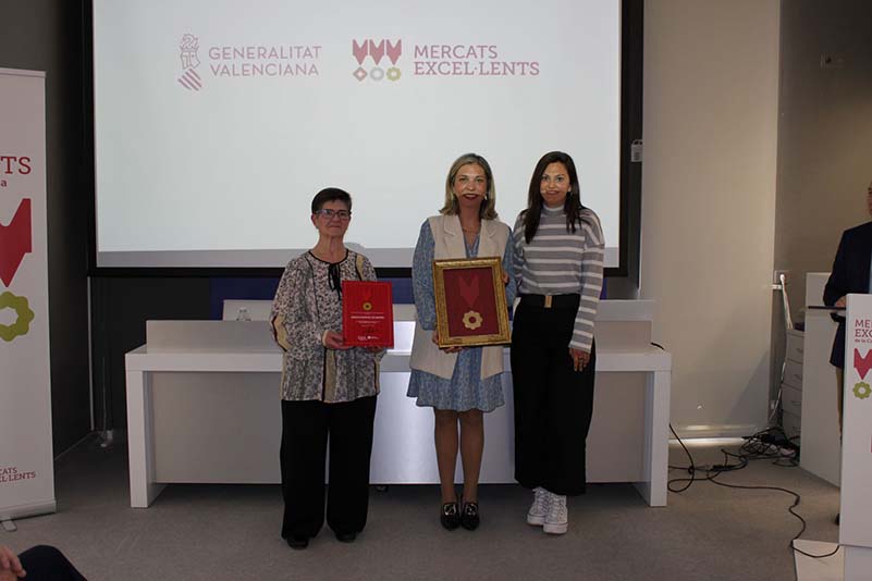 La Conselleria d’Economia Sostenible, Sectors Productius, Comerç i Treball ha atorgat al Mercat Municipal la distinció de Mercat Excel·lent, que converteixen l’espai en un referent de qualitat al nostre territori. El lliurament del reconeixement es va fer al Centre d’Artesanies de València per part de la directora general de Comerç, Artesania i Consum, Rosa Ana Seguí, amb la representació de la regidora de Comerç, Paula Cerdà, acompanya per la presidenta de l’Associació de Venedors del Mercat de Vinaròs, Tere Membrado.