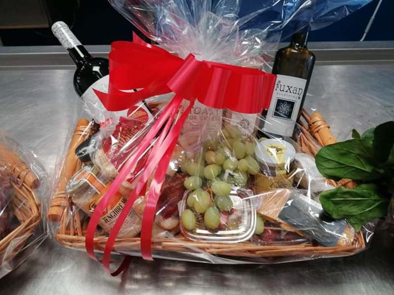 El premi conté un assortiment de marisc, verdures, licors, embotits ibèrics, carn i plantes