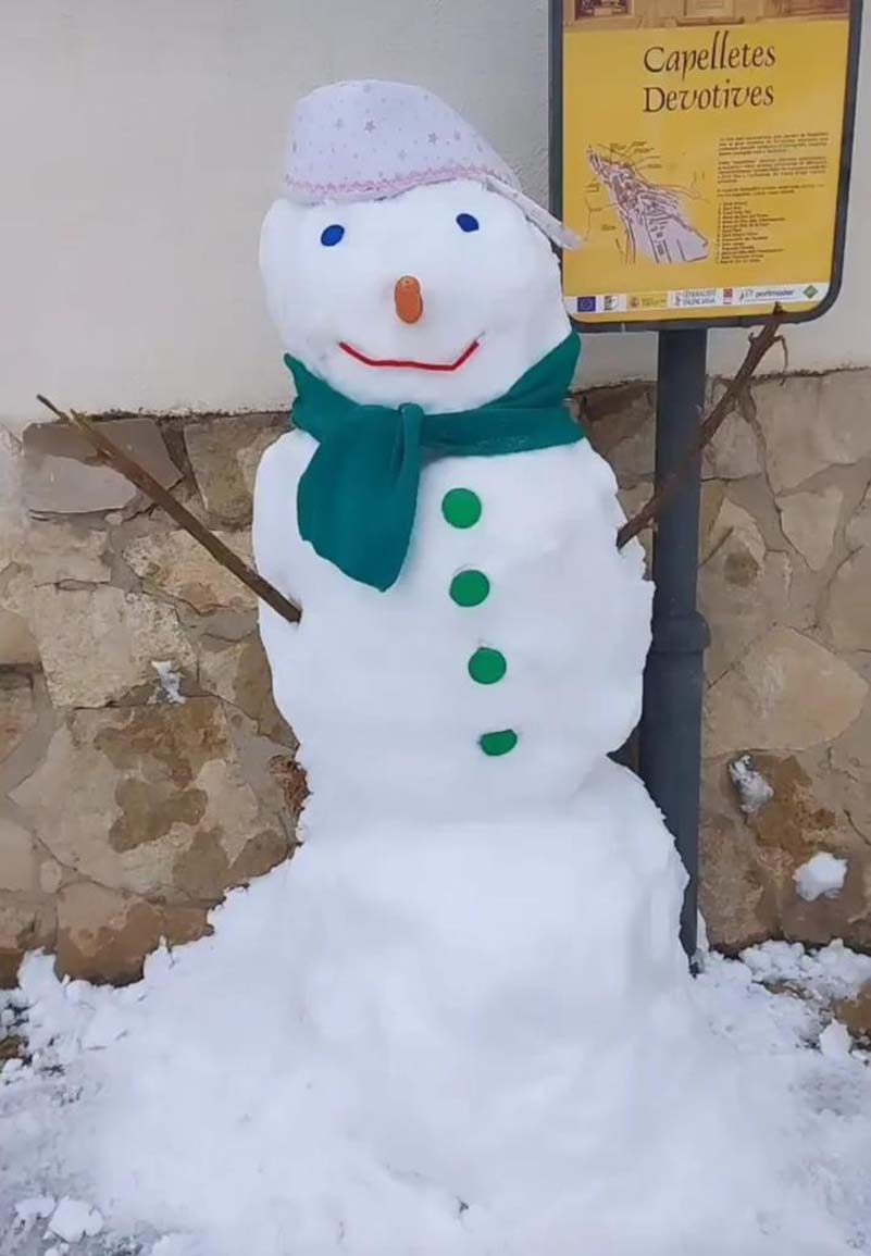 Els qui no han pogut anar a classe a Vilafranca han sigut els i les alumnes d’institut, pel que han aprofitat el dia en el poble per a crear divertides figures de neu com un ninot o un forn.