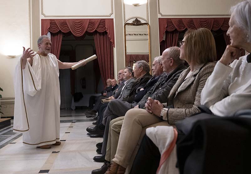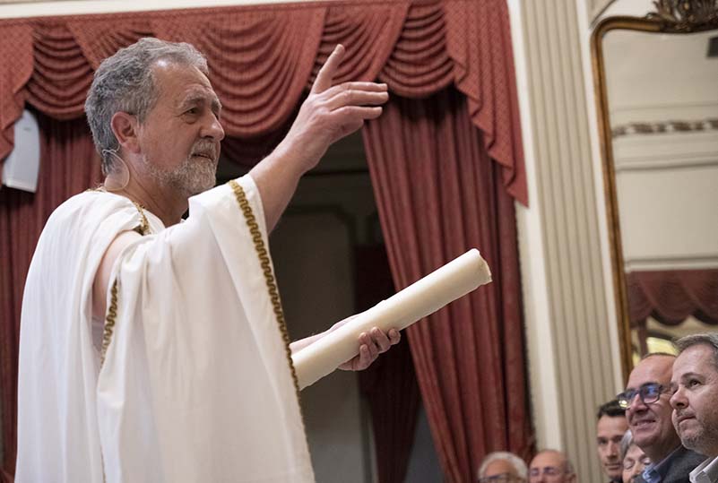 El presidente de la Diputación de Castellón, José Martí, ha encarnado a Platón para abordar la Ciudad Ideal según el filósofo en un acto que ha tenido lugar en el Real Casino Antiguo de Castelló.