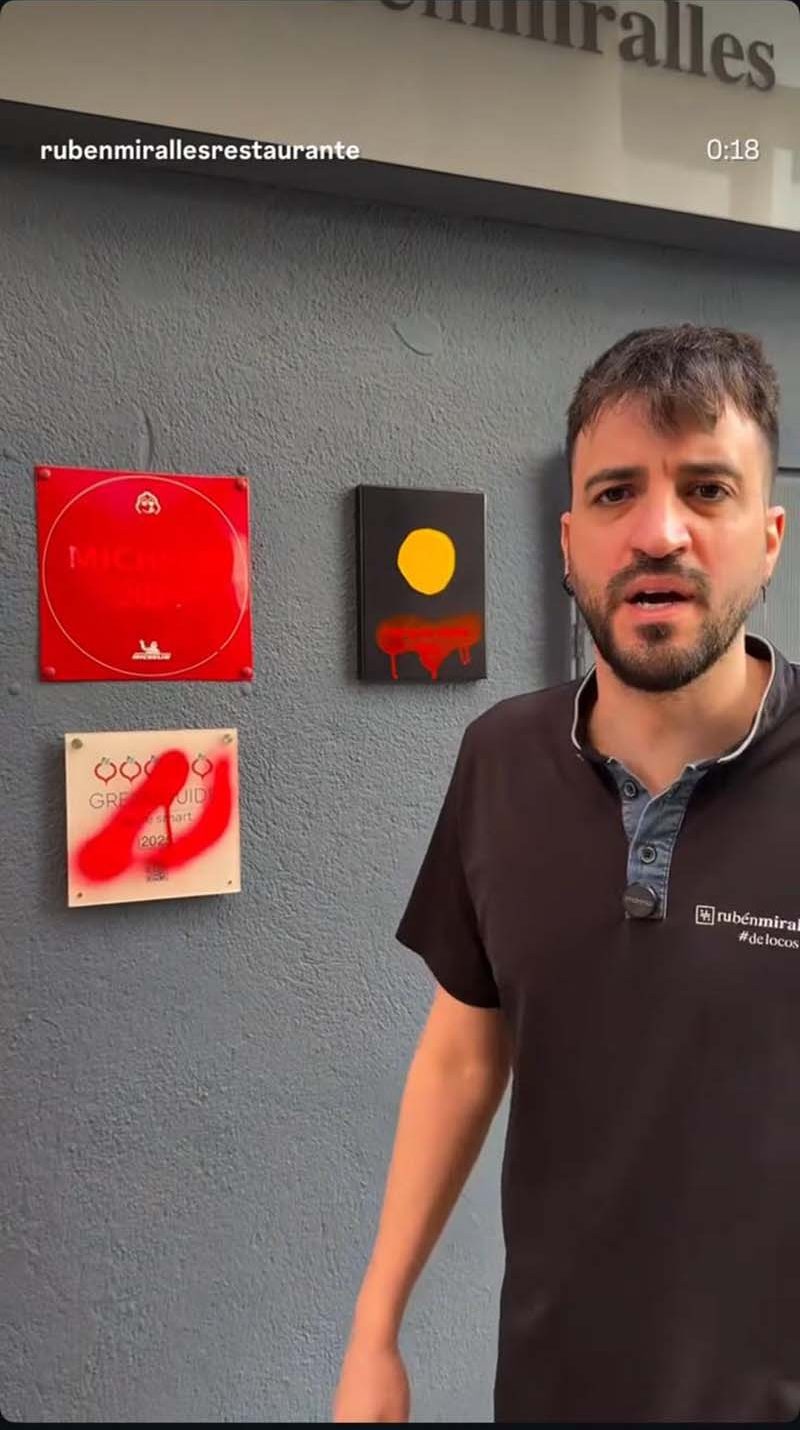 El restaurant impulsat per Rubén Miralles ha denunciat un acte vandàlic ocorregut recentment a les seues instal·lacions. Segons han explicat, aquest matí han trobat la façana del local i les plaques identificatives amb pintades realitzades durant la nit.