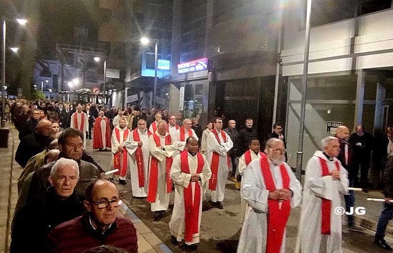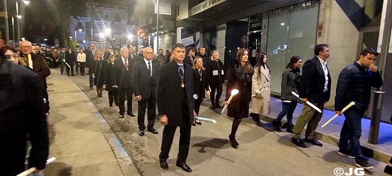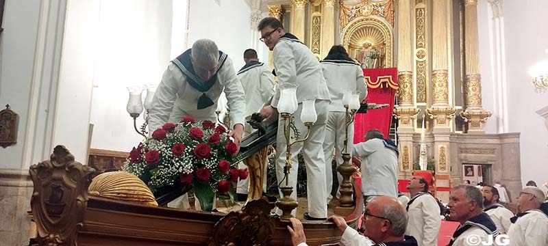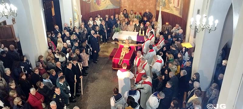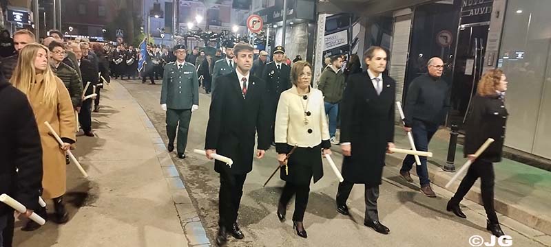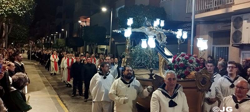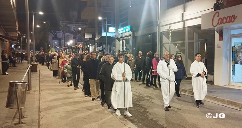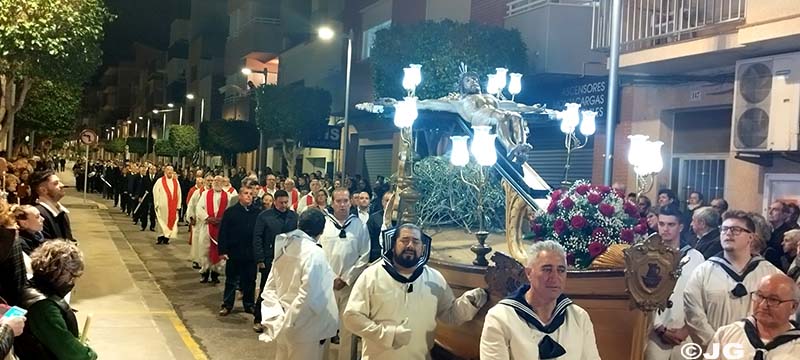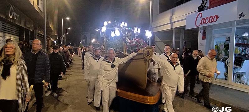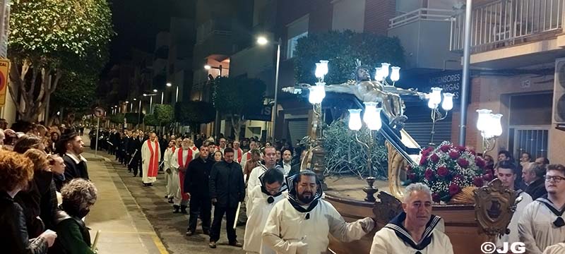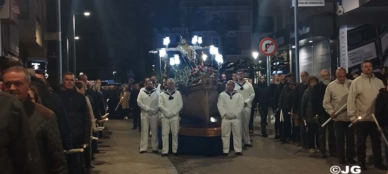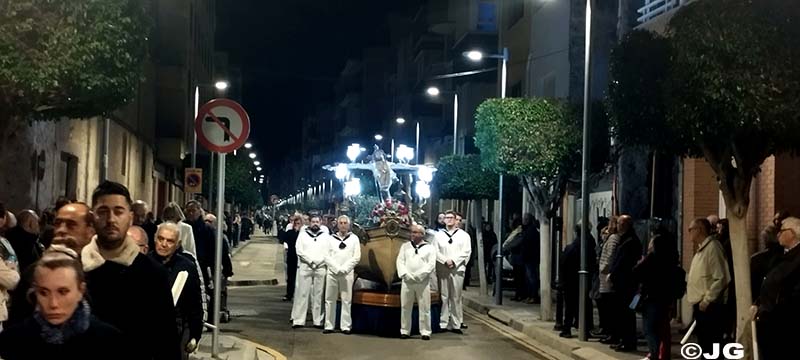 Acompanyen a la Processó, el Grup de Bombs de Bombs i Tabals del Stm. Crist del Mar, Sacerdots de les parròquies de la ciutat i de la Diòcesi de Tortosa, Confraria de Pescadors, Alcaldessa, Corporació Municipal, Cap de Policia Local, Tinent de la Guàrdia Civil i Trànsit i tancava la processó la Banda de Música “Ciutat de Benicarló”.