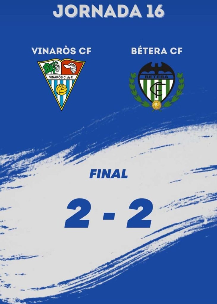 El Vinaròs C.F. va empatar a 2 gols contra el Bétera C.F. “A” en el partit disputat ahir per la vesprada corresponent a la setzena jornada de la Primera FFCV.