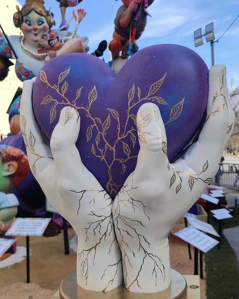El passat divendres 15 de març, dia de la planta a la capital del Túria, l’empresa Elige 3D va fer entrega d’aquesta figura a la falla Músic Gomis de Valencià. Que fins aquesta nit llueix amb el monument gran. La figura que són dues mans agafant un cor, simbolitza que amb la solidaritat es pot sortir de totes les situacions complicades.