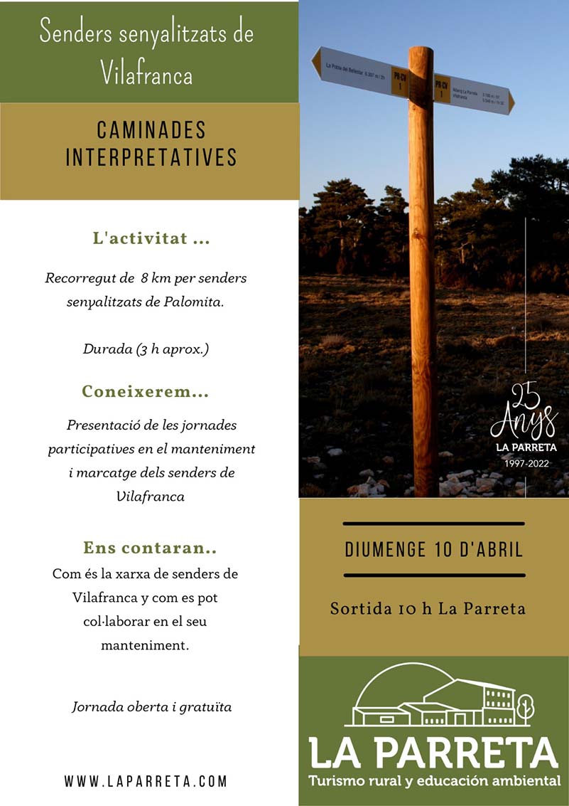 Així doncs, el diumenge 10 al matí tindrà lloc la caminada per les senderes senyalitzades del bosc Palomita. Amb un recorregut de 8 km, la marxa partirà de l’alberg La Parreta i tractarà d’interpretar totes les senderes i camins presents, així com de conéixer el seu manteniment i formes de marcatge. L’activitat és gratuïta i apta per a tots els públics. Aquella mateixa vesprada, i per a acabar amb els esdeveniments culturals del cap de setmana, a la Sala Carles Pons de la Casa de la Cultura de Vilafranca es podrà gaudir d’un concert d’òpera via Internet. Es tracta de l’obra ‘Macbeth’, de Verdi, que se celebra en el Palau de les Arts Reina Sofia de València.