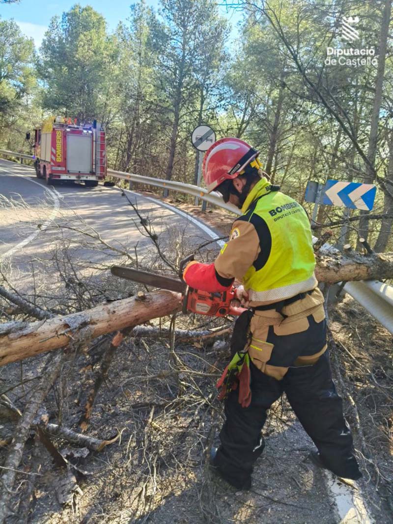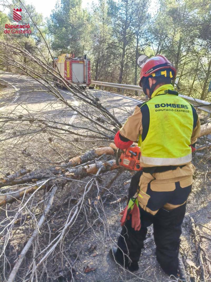 Les principals actuacions s’han centrat en la retirada d’arbres caiguts en diversos municipis de l’interior de la província, concretament a Villamalur, Viver (on s’han registrat dues incidències), Ayódar, Montán i Sant Joan de Penyagolosa.