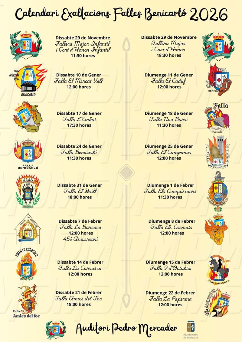 El dissabte serà el torn de la Falla Mercat Vell, que obrirà el calendari de proclamacions, mentre que el diumenge la Falla El Caduf proclamarà els seus càrrecs per a l’exercici faller.