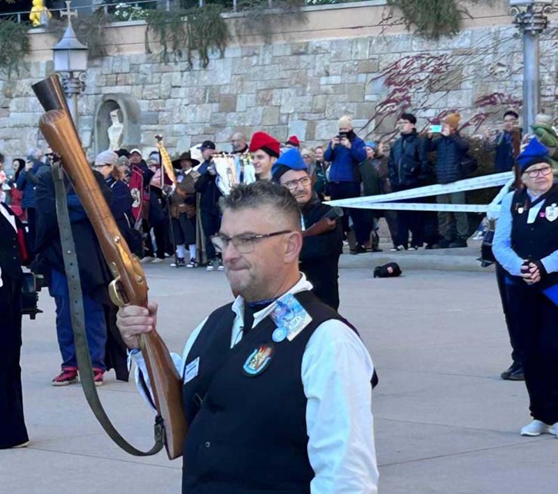 Davant la muntanya sagrada, el grup benicarlando va oferir una espectacular demostració de trabucs, omplint la plaça de trons, pólvora i tradició, en un acte carregat d’emotivitat. Els retrucs van ressonar com un eco ancestral que travessa segles d’història, un homenatge als avantpassats i un gest de continuïtat cap a les noves generacions.
