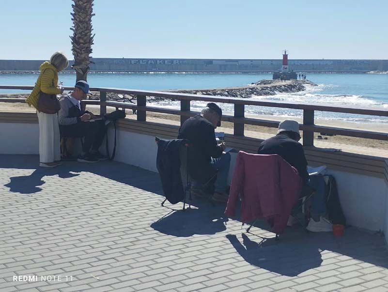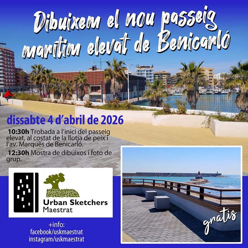 El passat dissabte 4 d’abril, diferents membres de l’entitat Urbana Sketchers Maestrat van realitzar una quedada per dibuixar el nou passeig marítim elevat de la ciutat de Benicarló.