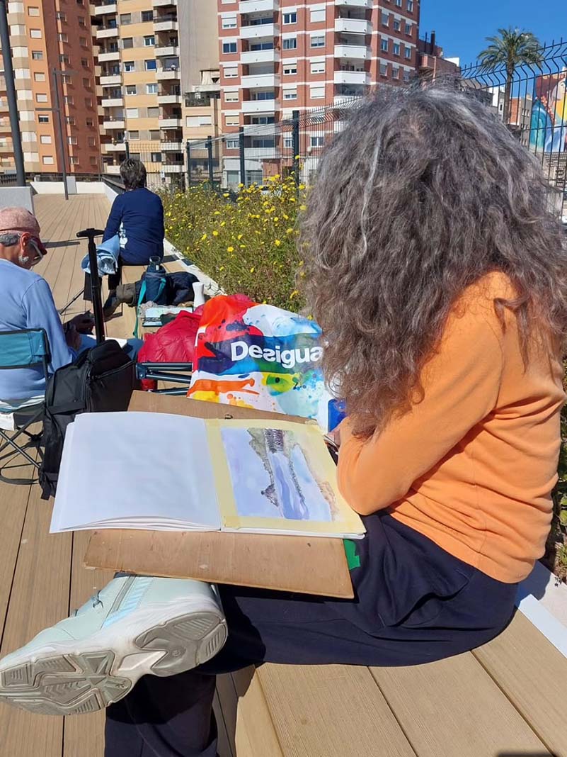 L’entitat va assegurar en el comunicat en les seves xarxes socials que “hem gaudit d’un bon dia de dibuix a la nova passarel·la elevada de Benicarló, entre el port pesquer i la platja del Morrongo”.