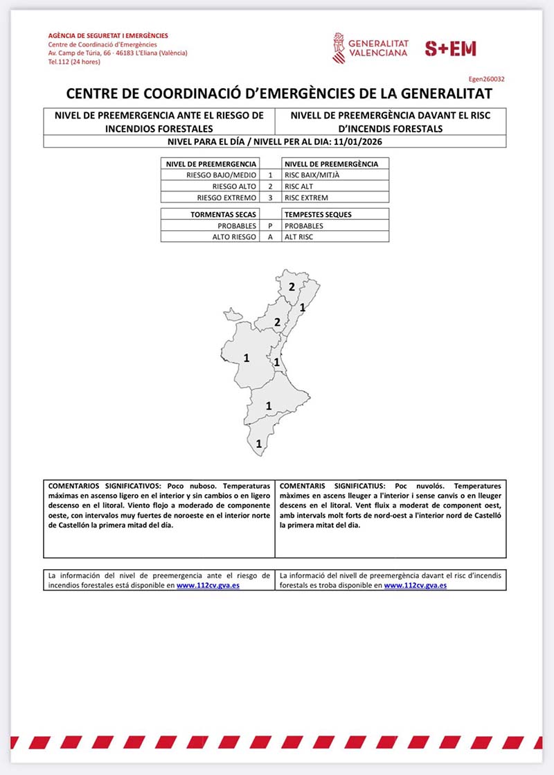 Davant aquesta situació, es recomana extremar les precaucions, evitar qualsevol activitat que puga provocar incendis i seguir en tot moment les indicacions de les autoritats i dels serveis d’emergència.