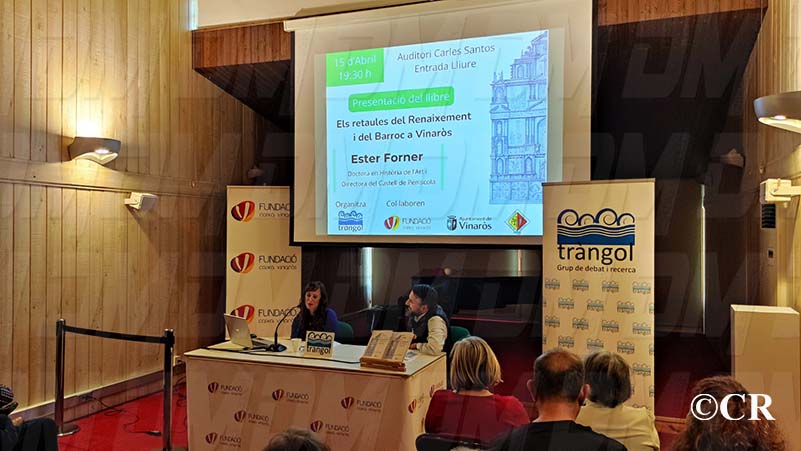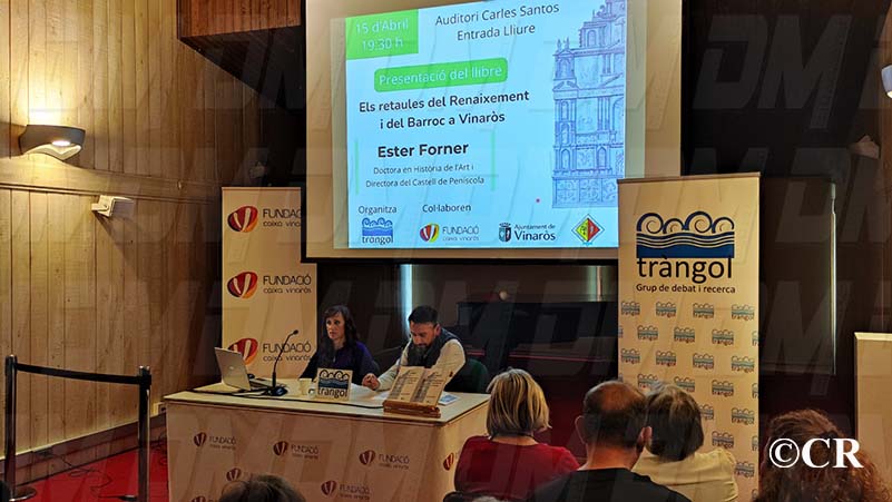 Aquesta vesprada, a l’Auditori Carles Santos de la Fundació Caixa Vinaròs, s’ha presentat el nou llibre d’Ester Forner “Els retaules del Renaixement i del Barroc a Vinaròs”. L’acte ha estat organitzat pel Grup de Debat i Recerca Tràngol, amb el suport de l’Ajuntament de Vinaròs, la Fundació Caixa Vinaròs i l’associació cultural “Amics de Vinaròs”.