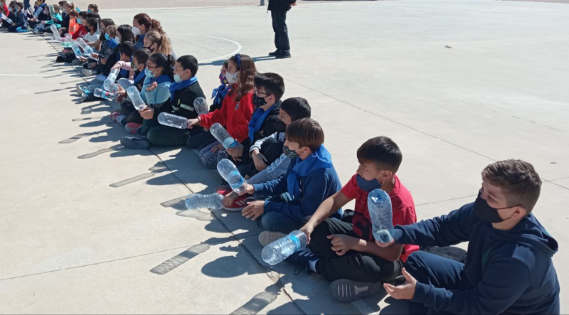 Tota l’escola ha participat en una original mascletà rítmica feta amb botelles.