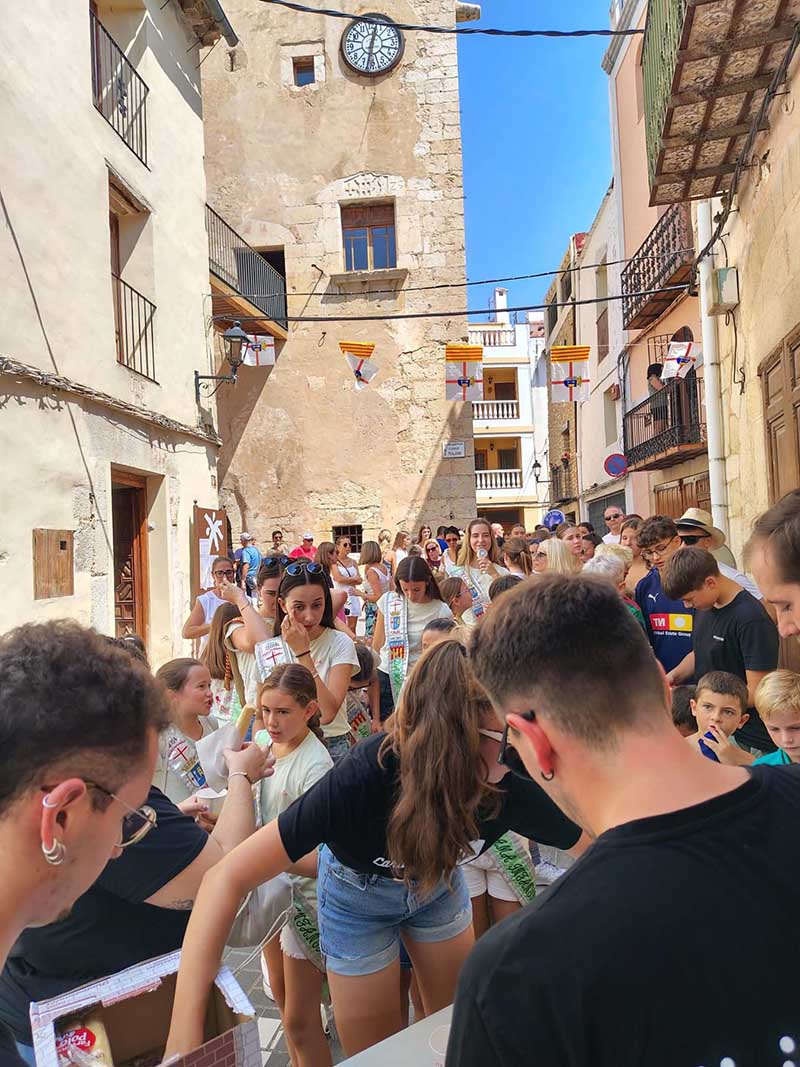 Els carrers del poble de Càlig, ja fan olor a polvora, la musica ja corre pels carrers. Les campanes, el coet anunciador i la hisada de la bandera marquen l’inici de les festes patroanls.