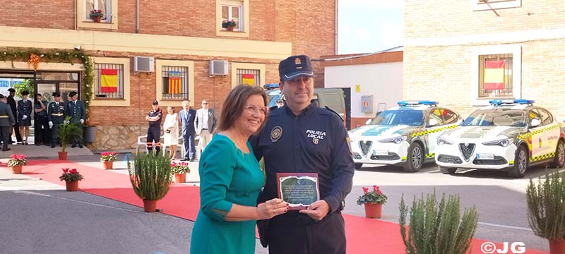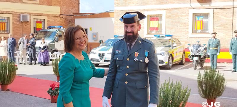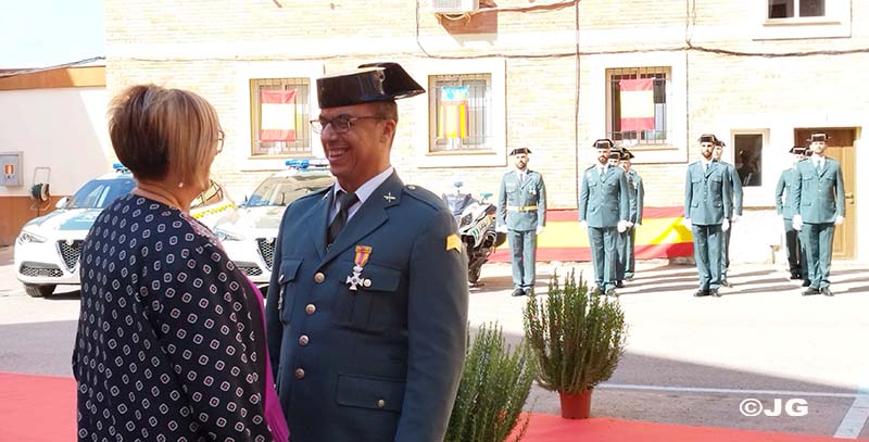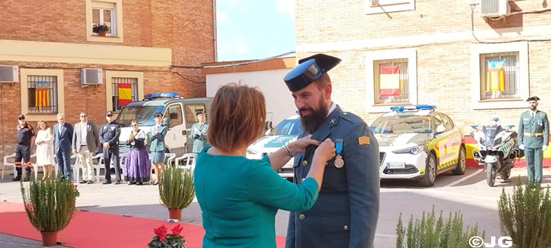-Guardia Civil D. JUAN CARLOS GONZÁLEZ JIMÉNEZ, destinado en el Puesto Principal de Benicarló. Hace entrega de la Condecoración ( Cruz de Plata a la Constancia en el Servicio), la Alcaldesa de Cälig.
