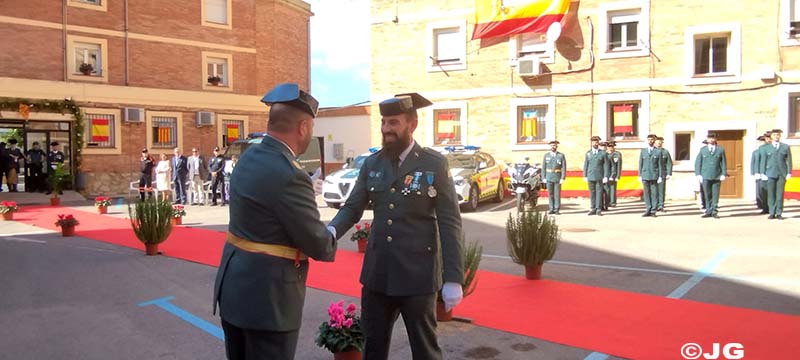-Guardia Civil D. SERGIO PÉREZ MARTÍNEZ, destinado en el Puesto Principal de Benicarló. Hace entrega de la Condecoración (Cruz del Mérito de la Guardia Civil, con Distintivo Blanco), el Brigada Comte. Pto. Actal de Blo.