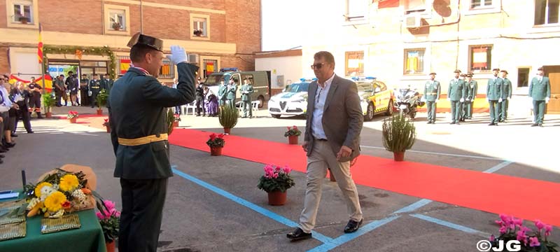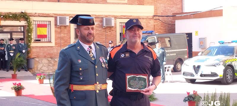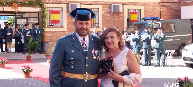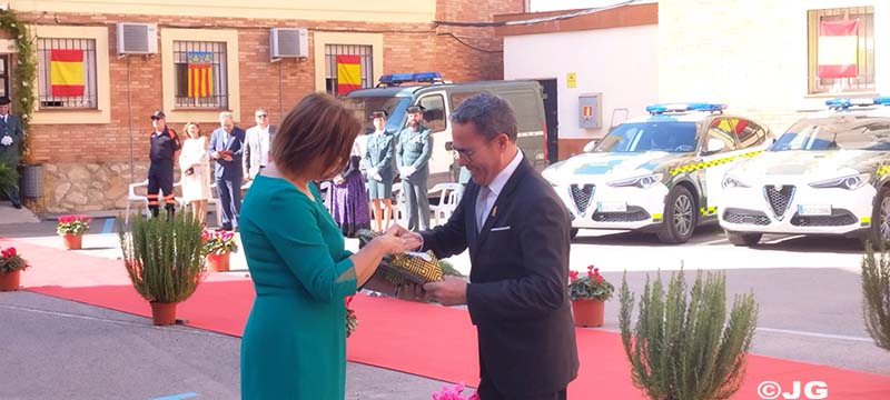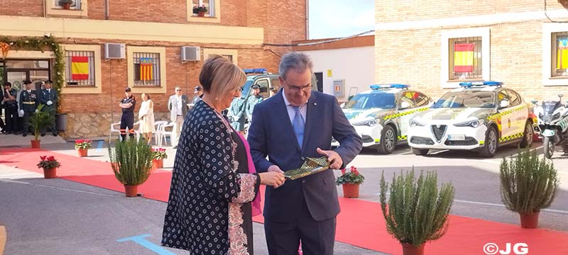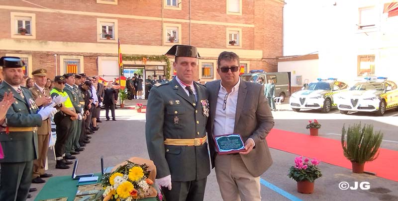 – En agradecimiento a la eficaz colaboración que siempre ha mantenido con la Guardia Civil, se hace entrega de una Placa Conmemorativa a D. José Antonio Gellida Coscollano, Gerente de la Empresa Gellida S.L. Hace entrega de la Placa el Sargento Trenzano.