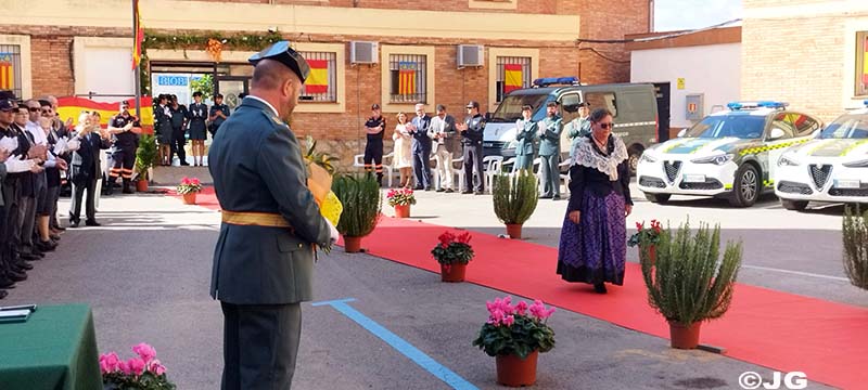 También se hace entrega de un ramo de flores, a la viuda de D. DANIEL MARTÍN CRUCES, que fuera Presidente de la Casa de Aragón en Benicarló y ardiente colaborador en estas fechas tan señaladas, DOÑA NIEVES ROLDÁN BONA. Hace entrega del ramo el Brigada Comandante Accidental del Puesto de Benicarlo.