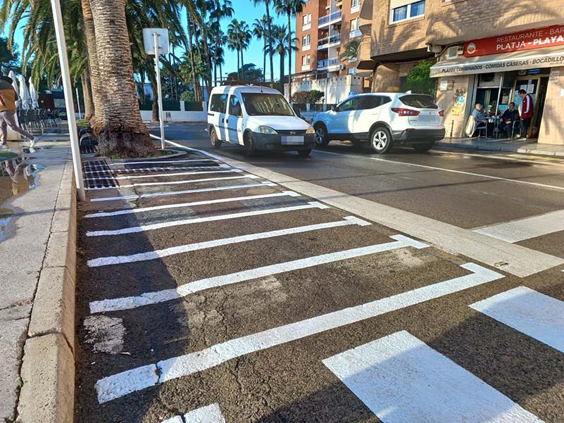 S’han ampliat els carrils de circulaciĂł per a vehicles a la intersecciĂł entre el Passeig MarĂtim i l’avinguda del MarquĂ©s de BenicarlĂł. A mĂ©s, s’han afegit noves places d’aparcament per a discapacitats i s’ha habilitat un nou pas per a vianants.
