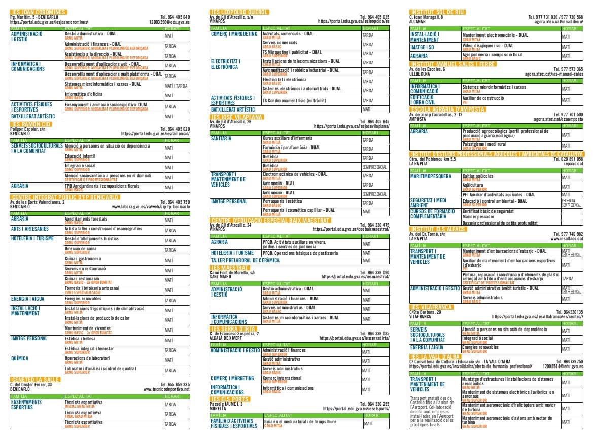 Demà divendres, un total de 17 instituts de les comarques del Baix Maestrat, els Ports i el Montsià, exposaran les famílies de cicles formatius que realitzen a cada centre.