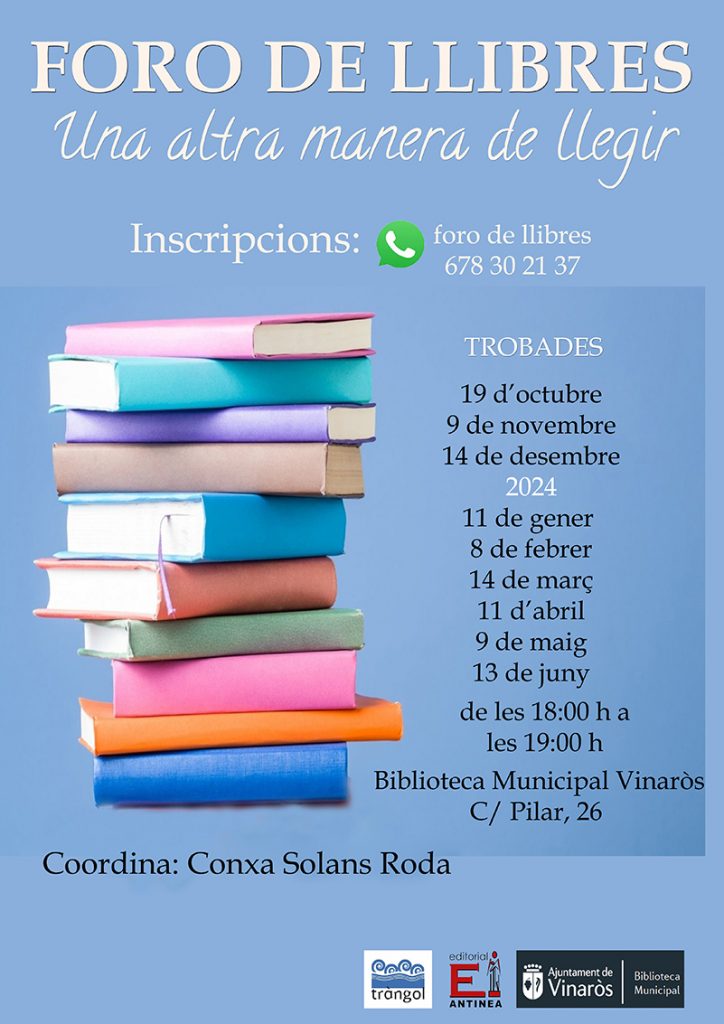 • Un nou Club de Lectura, Foro de Llibres, començarà la seva activitat el proper 19 d’octubre a la Biblioteca Municipal.