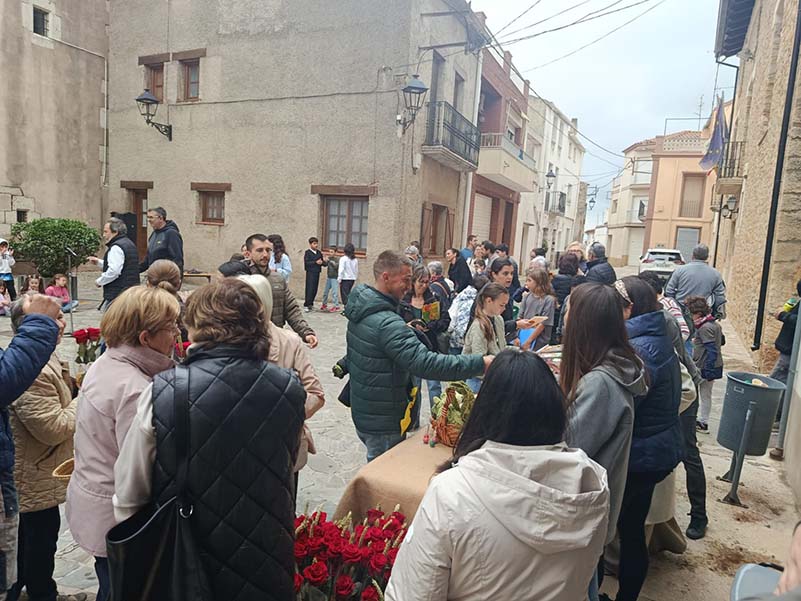 A partir de les 9.30 h, les activitats han començat amb el festival dels alumnes del col·legi, que han aportat un toc emotiu i festiu a la celebració. Durant tot el matí, també s’han pogut adquirir llibres de segona mà a la parada de l’AFA, així com roses a càrrec de l’associació Freginals Actiu. L’Ajuntament, per la seva banda, ha contribuït a l’ambient amb servei de cafè i coc, creant un espai de trobada i convivència.