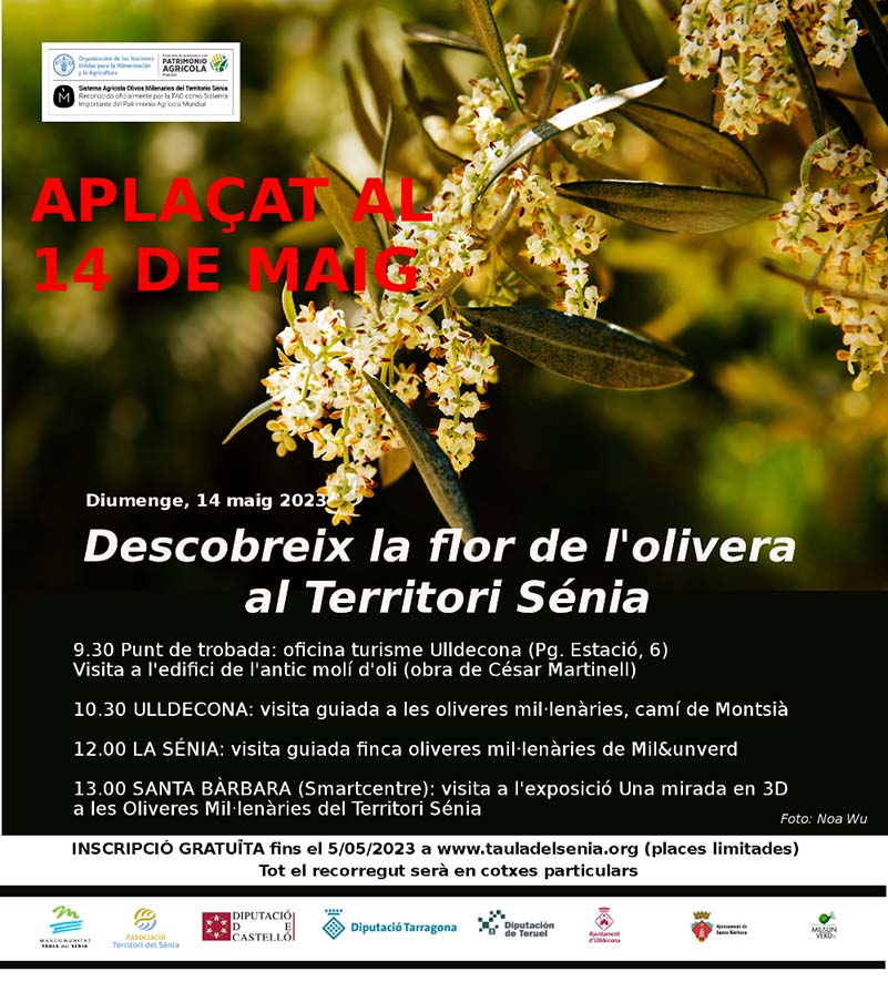 Diumenge 14 de maig vam fer l’activitat DESCOBREIX LA FLOR DE L’OLIVERA AL TERRITORI SÉNIA, començant a l’Oficina de Turisme d’Ulldecona (antic molí d’oli obra de Cesar Martinell), després a l’Àrea del camí Montsià i finalment a la finca de Mil&unverd a La Sénia.