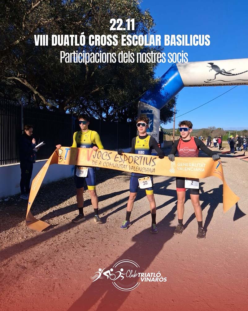 - El Club Triatló Vinaròs ha felicitat, a través dels seus canals de difusió, a tots els seus socis que han participat en la setena edició del VII Duatló Cross Escolar Basiliscus.