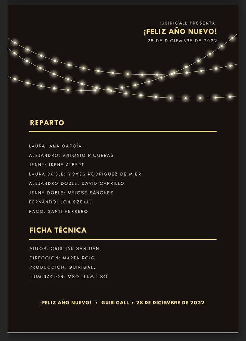 - Mañana 28 de diciembre (día de los inocentes), a las 22:00 horas, tenemos cita cultural en Benicarló. El grupo de teatro Guirigall artes escénicas, presenta la obra “¡Feliz Año Nuevo!”. En el auditorio Pedro Mercader.